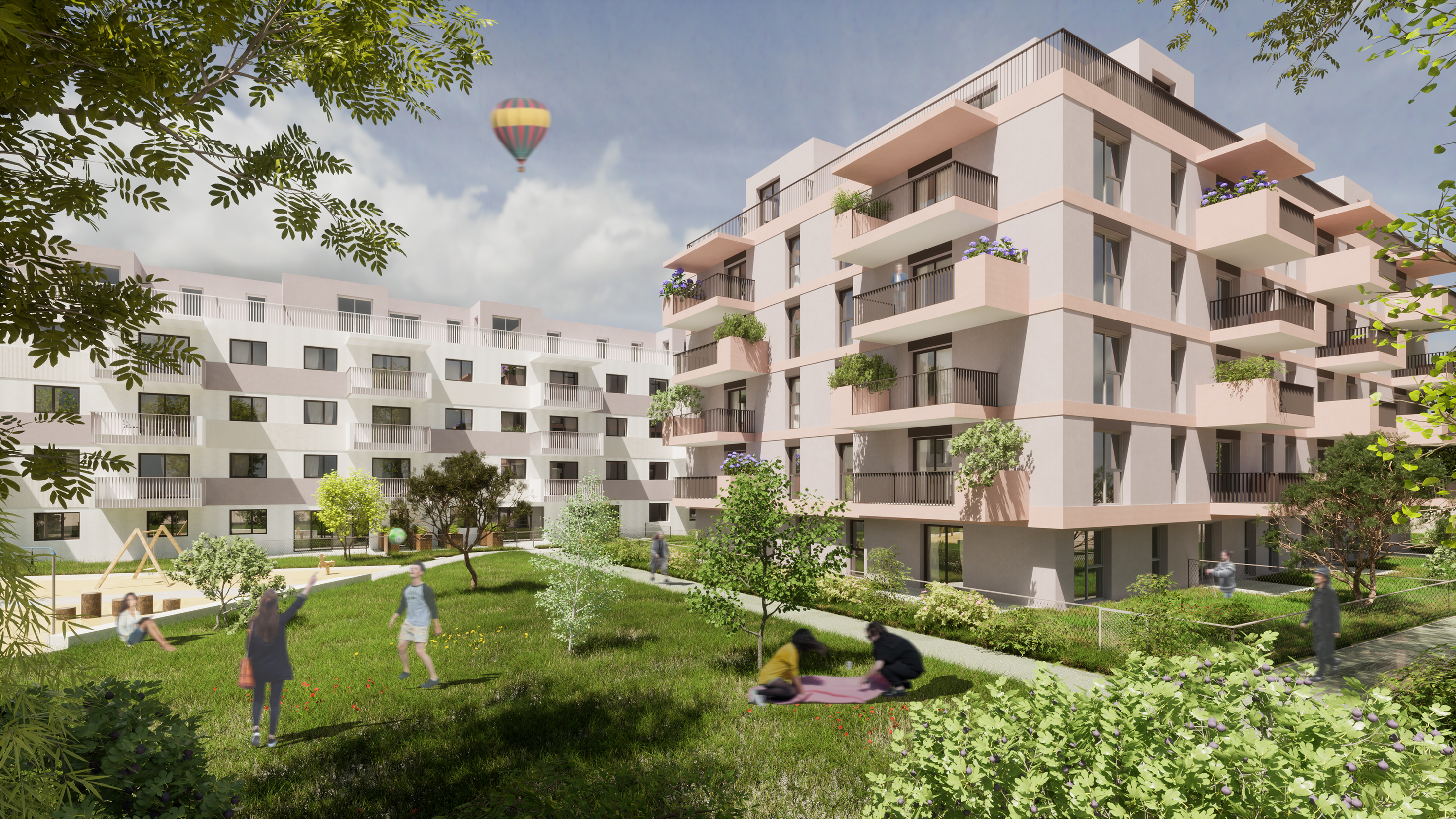 - großzügige hofseitig begrünte Spiel-, Begegnungs- und Bewegungszone mit Generationenpark im Südosten des Projekts